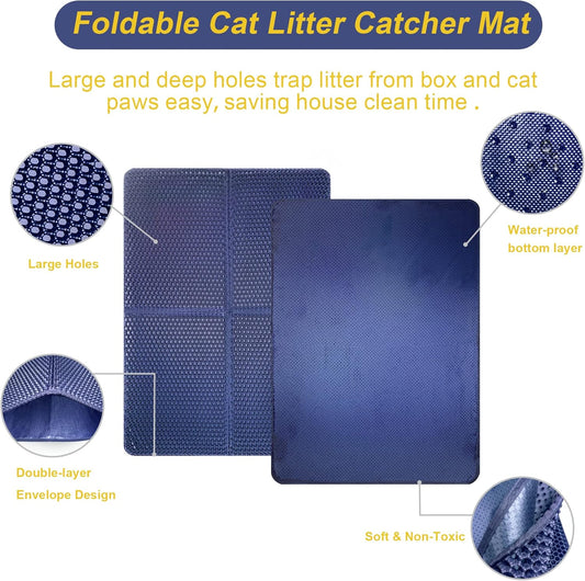 SIDUSAN Cat Litter Trapping Mat 30”X 22”Cat Litter Mat Kitty Litter Box Mat, Honeycomb Double Layer Foldable Litter Mat, Pretty Waterproof Urine Proof Mat, Scatter Control 2-Layer Easy Clean 1 Pack