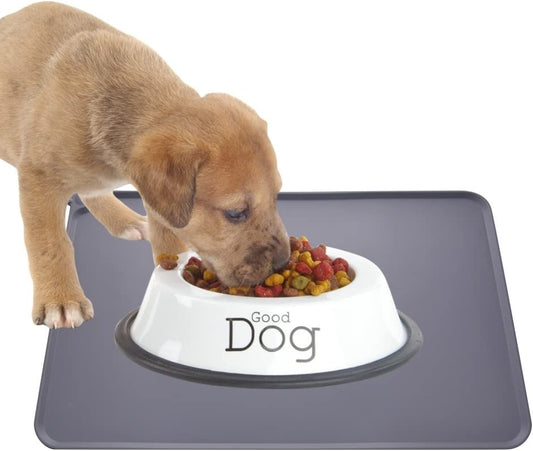 Silicone Dog Cat Bowl Mat, Non Slip Pet Feeding Mat, Waterproof, Grey, 18.5"X11.8"